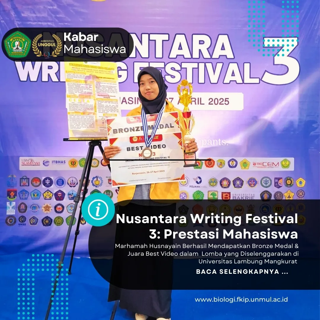 “Kami sangat bangga atas prestasi Marhamah,” ujar Dr. Masitah, S.Pd., M.Pd., Ketua Program Studi S1 Pendidikan Biologi FKIP Unmul. “Keberhasilan ini menunjukkan bahwa mahasiswa Unmul tidak hanya unggul dalam riset, tetapi juga mampu mengemas pengetahuan sains ke dalam format multimedia kreatif yang relevan untuk masyarakat luas.”